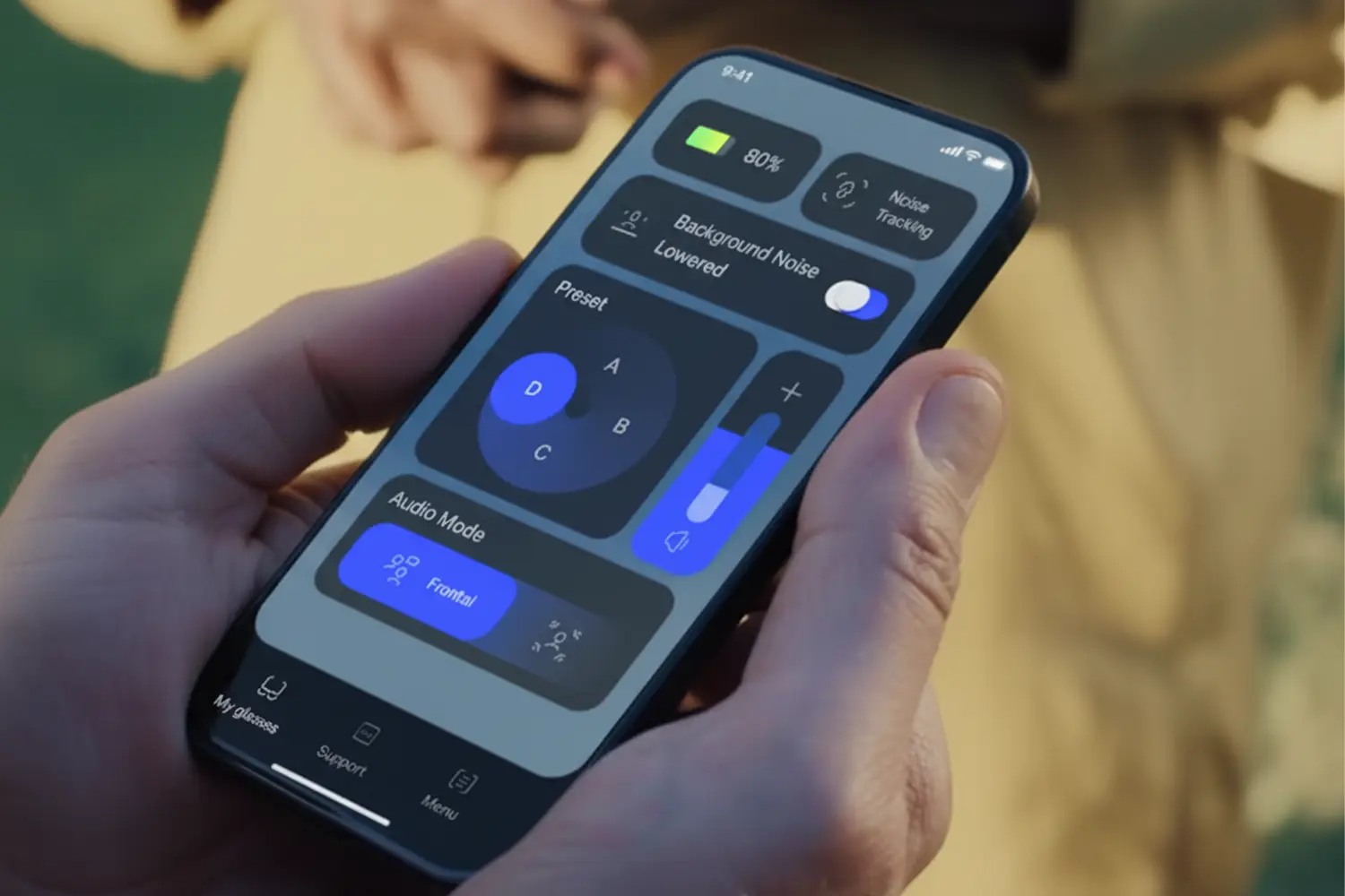 Niente auricolari, niente ingombri nell’orecchio: i Nuance Audio sfruttano una tecnologia a conduzione aerea integrata nelle stanghette degli occhiali, completamente invisibile. Ideali per chi ha perdite uditive lievi o moderate e non si trova a proprio agio con apparecchi acustici tradizionali.